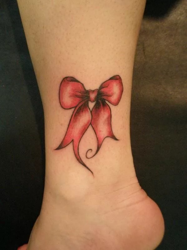 在某些情况下,纹身是为了将一些重要或愉快的事件保存在记忆中。因此,红蝴蝶结是所谓的命运之线,这意味着强烈的爱恋,两颗心的结合,没有人有能力打破它。