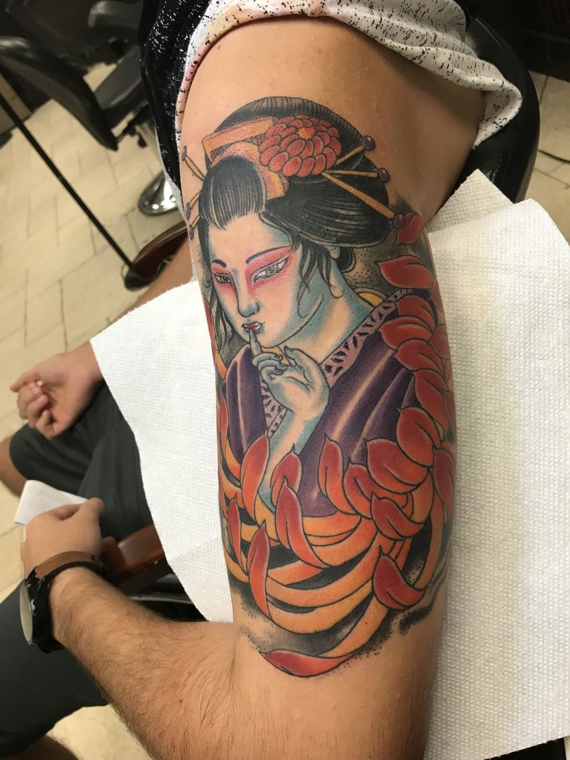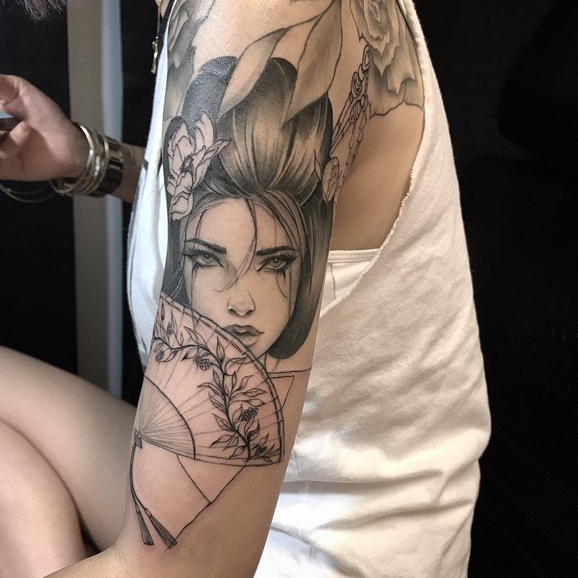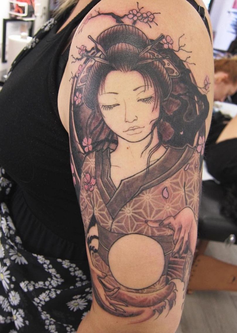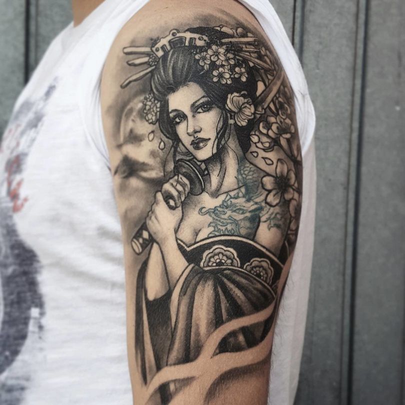 艺妓的形象--一个女性化和神秘的形象,来自日本。现在有些人认同它,并用纹身来强调它。考虑一下下面的男女艺妓纹身的含义。