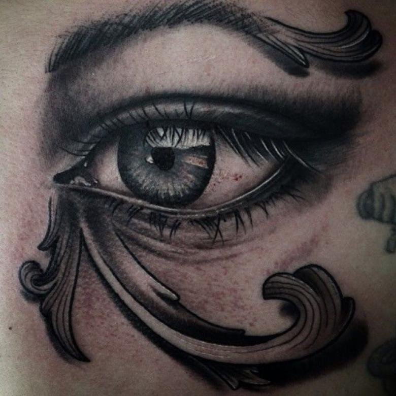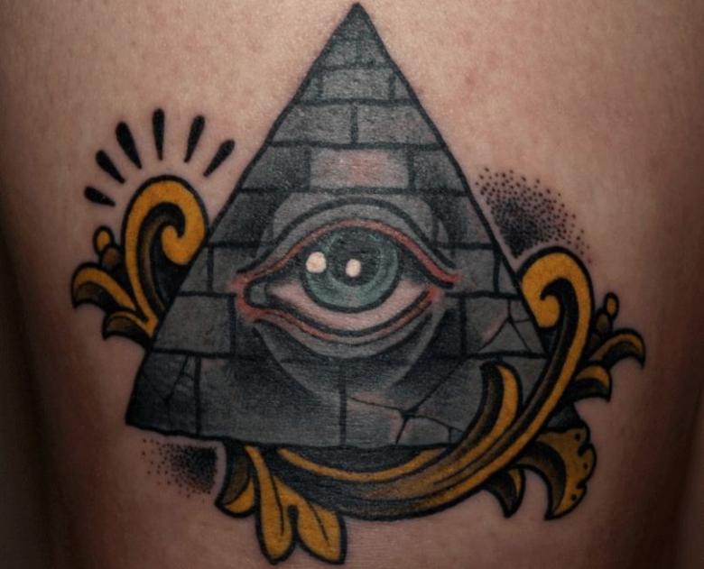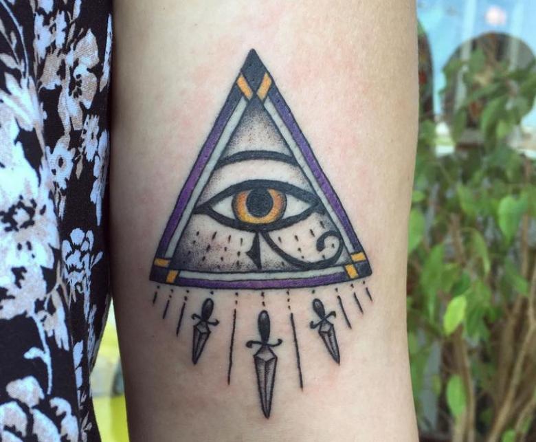 这种流行的纹身也被称为全视眼,指的是灵魂复活的秘密标志,即死者的回归生活。该设计使佩戴者有能力了解事物的隐藏本质,打开秘密知识的面纱。