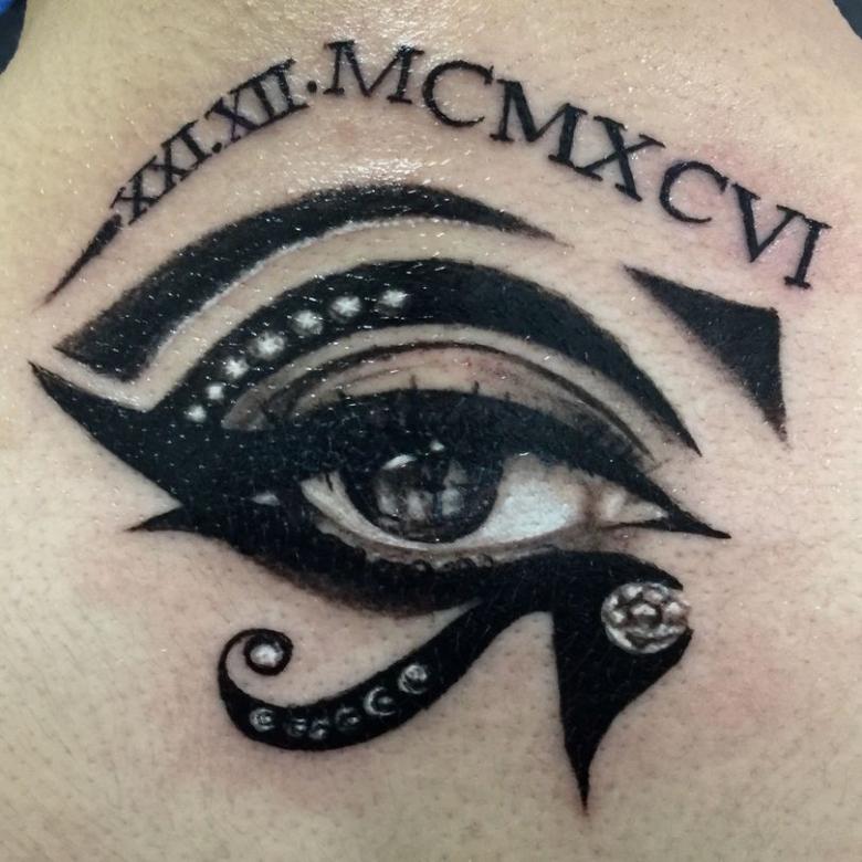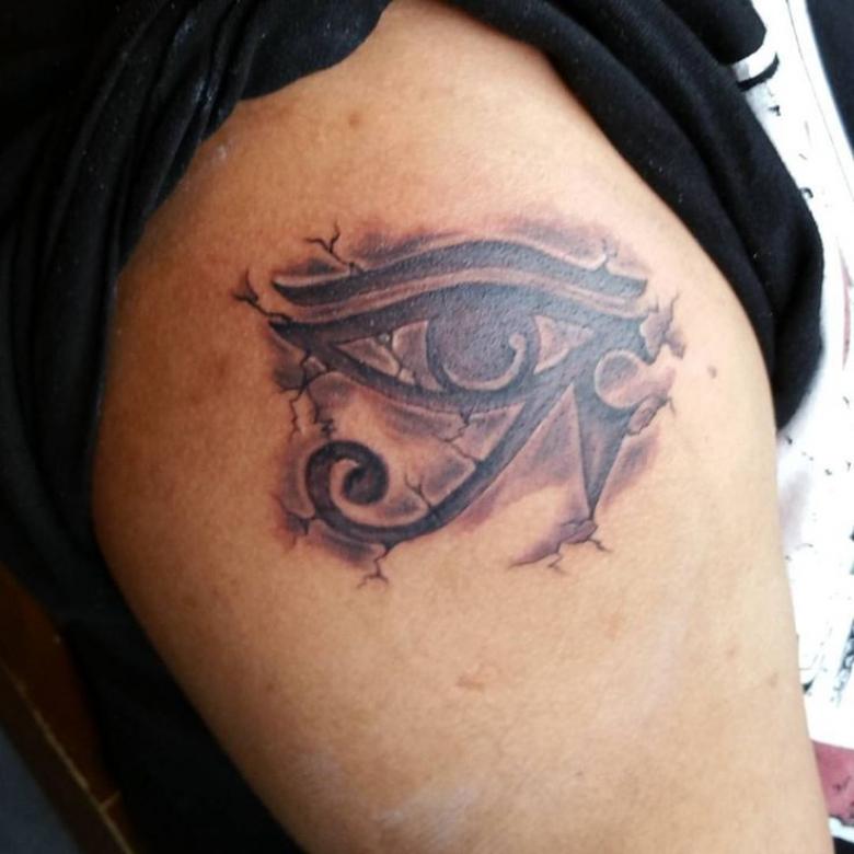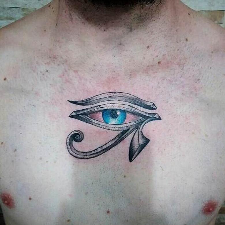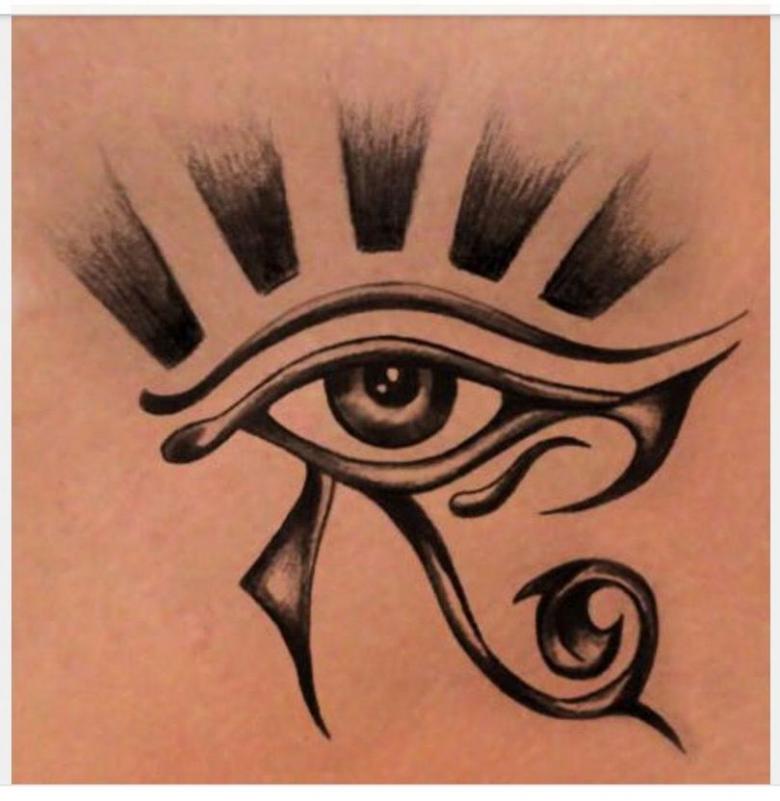 传说在失去眼睛后,胜利者陷入了潜意识的深处,灵魂的黑暗面和光明面在那里重新结合。由于获得了精神上的完整,神的凝视获得了治疗的力量。因此,荷鲁斯之眼纹身被认为是一个强大的护身符,其佩戴者受到最高神灵的全天候保护。