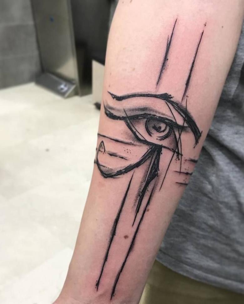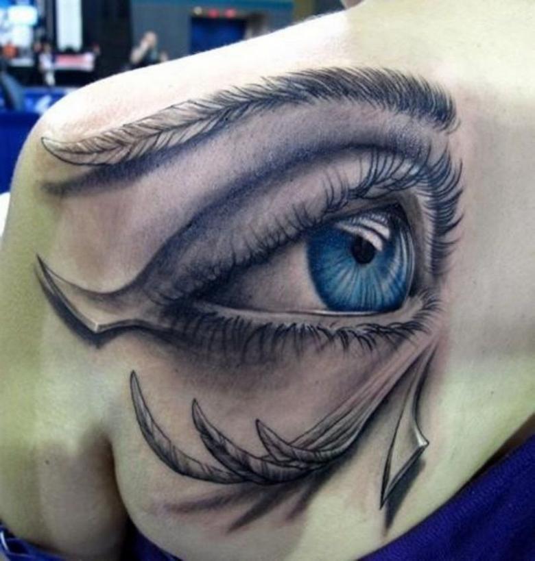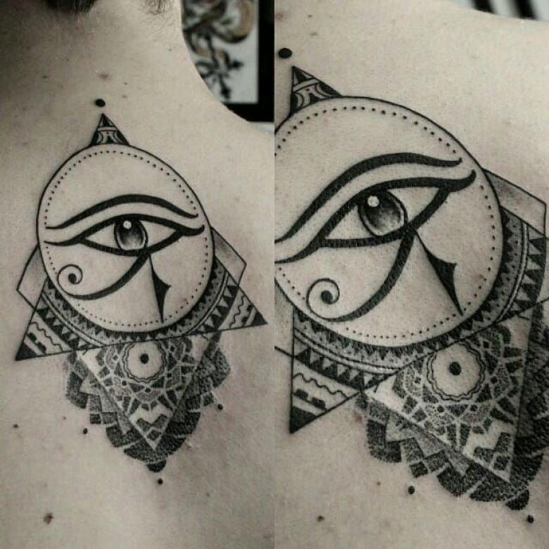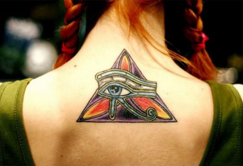 荷鲁斯的眼睛纹身(包括左边和右边,呈三角形),女性和男性的含义,不寻常的纹身设计和照片创意