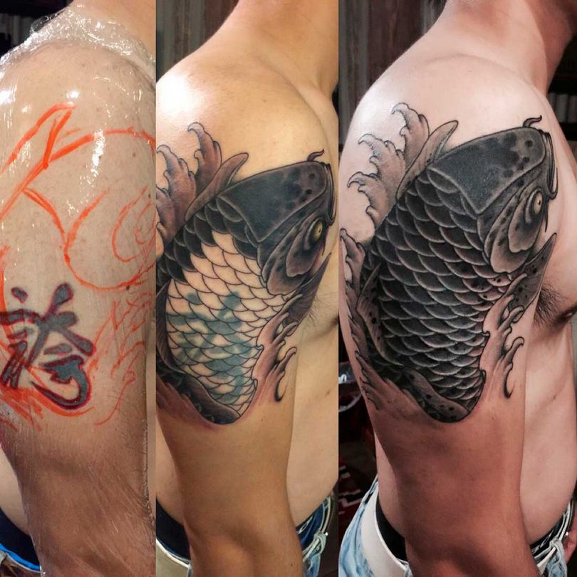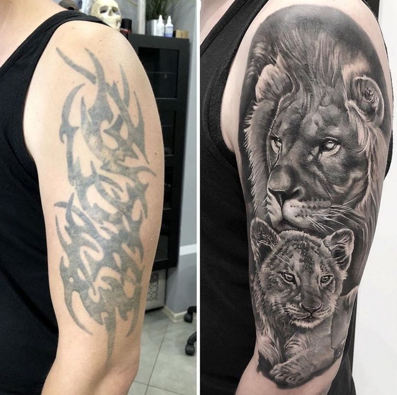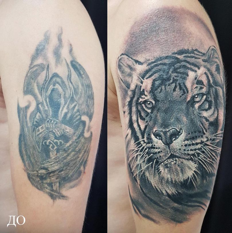 重叠的纹身是一个重大的决定,一个细致的决定是值得采取的。查看工作室的照片和视频,并与大师们交谈。一个好的技术员会重塑别人的错误,没有人会在他或她之后再做重塑。还值得铭记的是,修复的成本会更低,不要对虚高的价格表做出反应--这是一个错误。好的大师不会为这种简化作品定价过高,所以他们可以立即与其他人区分开来。