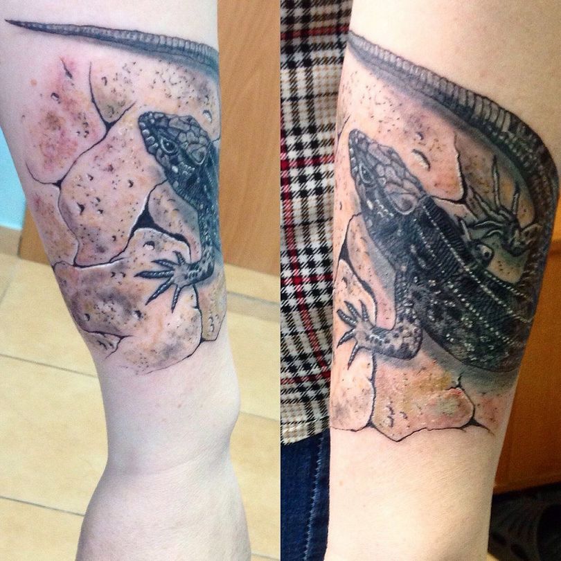 - 检查专家的作品集。它应该包含重叠的纹身的例子。如果你不这样做,最好叫一个有经验的纹身师来,这样你就不会感到困惑,特别是如果你是一个复杂的案例。
