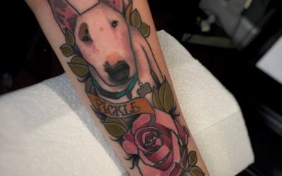 Tatouage d'un Bull Terrier - signification pour les filles et les hommes, croquis impressionnants sur le bras, le poignet, l'épaule, la poitrine, la jambe.