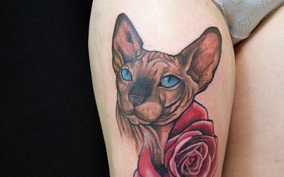 Tatouage du chat sphinx - signification pour les filles et les hommes, styles populaires, croquis originaux et idées de photos
