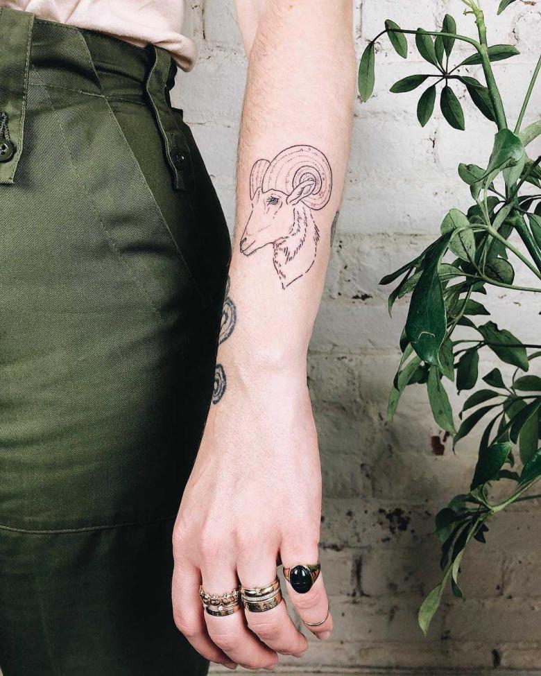 Le tatouage d'une femme avec des cornes ne convient absolument pas à une femme. Surtout dans le corps féminin fragile, il n'y a pas de place pour cela et cette image ne tolère pas une image miniature.