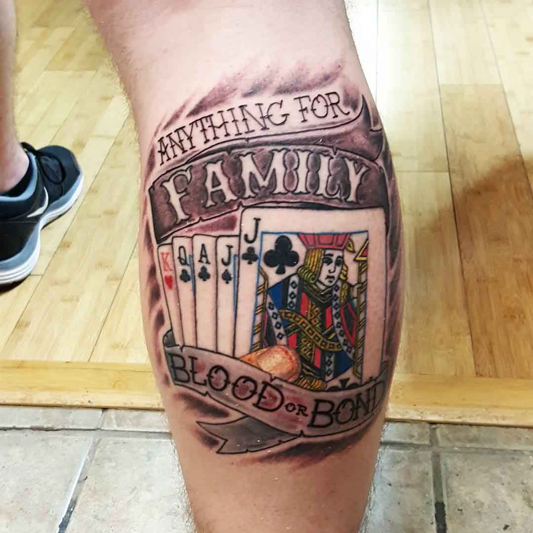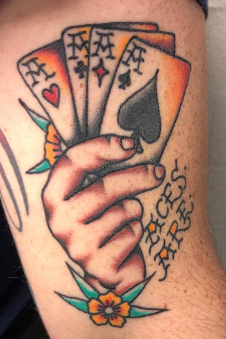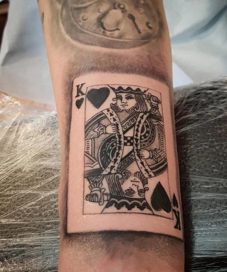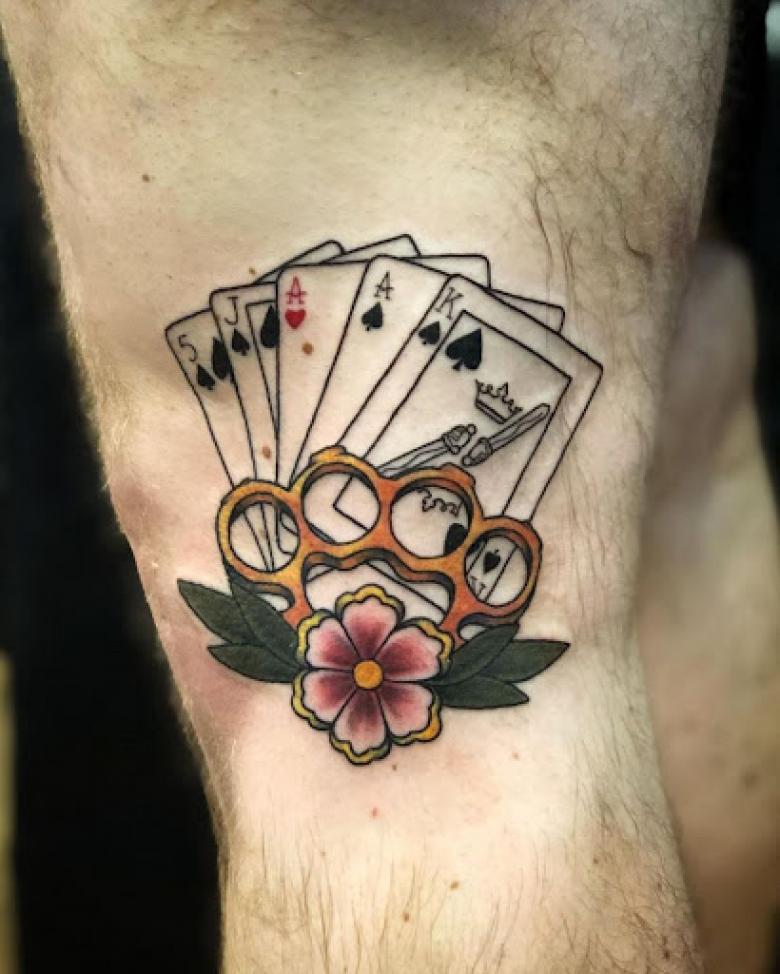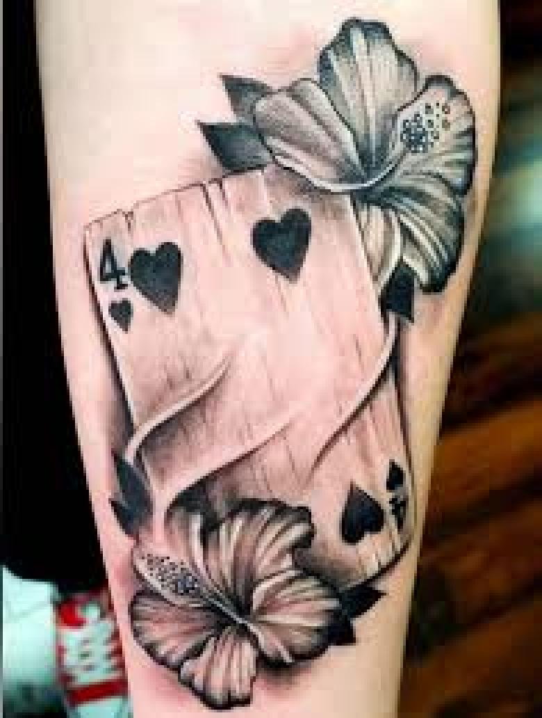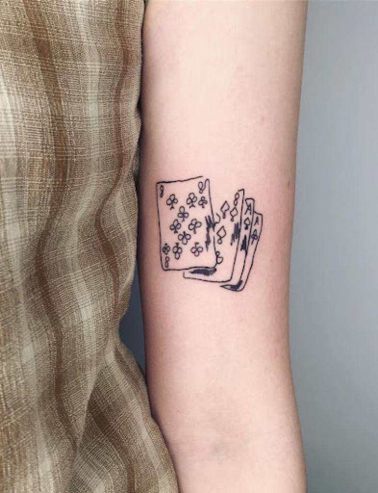 L'emplacement le plus courant de ce tatouage sur le corps est le bras. Et le tatouage se compose de 2 cartes ou de plusieurs cartes. Par ailleurs, la signification du tatouage à 7 et 2 cartes est que c'est la pire combinaison pour jouer au poker. Il faut faire attention à la combinaison de ces costumes.