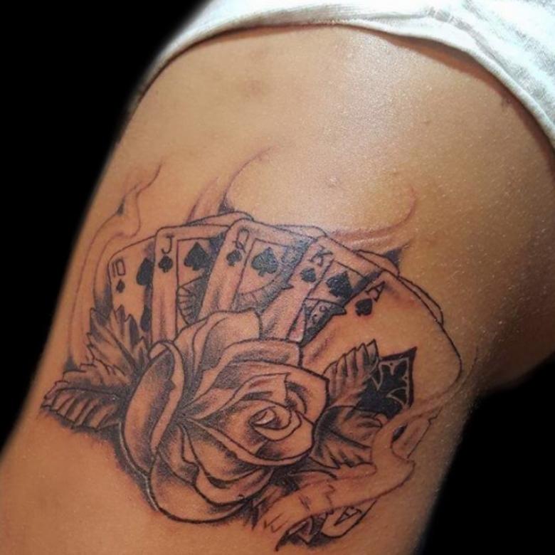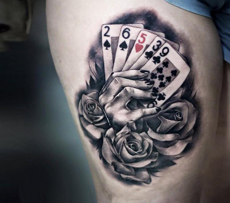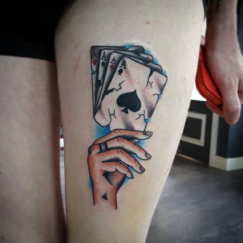 Un tatouage sur le corps d'une carte à jouer a une signification sacrée. Certains pensent qu'un tel dessin peut aider dans les situations difficiles, y compris l'entrepreneuriat. Cependant, le porteur du tatouage doit avoir un caractère audacieux. Il ne faut pas avoir peur de prendre des risques.