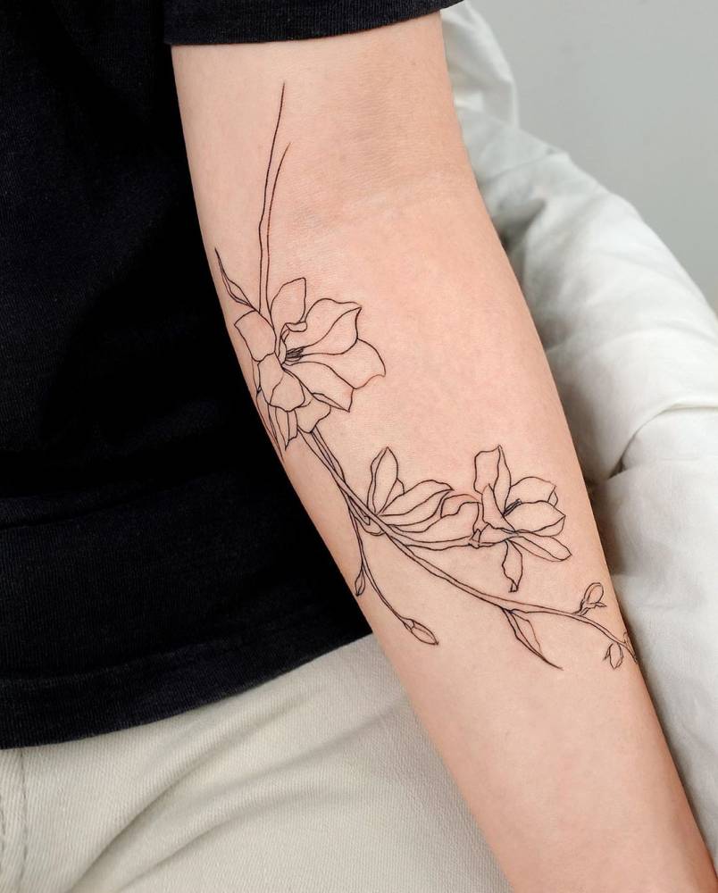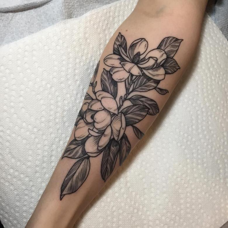 La signification du tatouage du magnolia est basée sur une légende chinoise. On dit que la dernière des cent plus belles filles capturées a été transformée en arbre à fleurs. Les 99 personnes qui ont été assassinées ont été transformées en boutons de fleurs. Depuis les temps anciens en Chine, cette plante est considérée comme un symbole de pureté. Il n'est pas rare que les mariées portent l'image de la fleur sur leur corps.