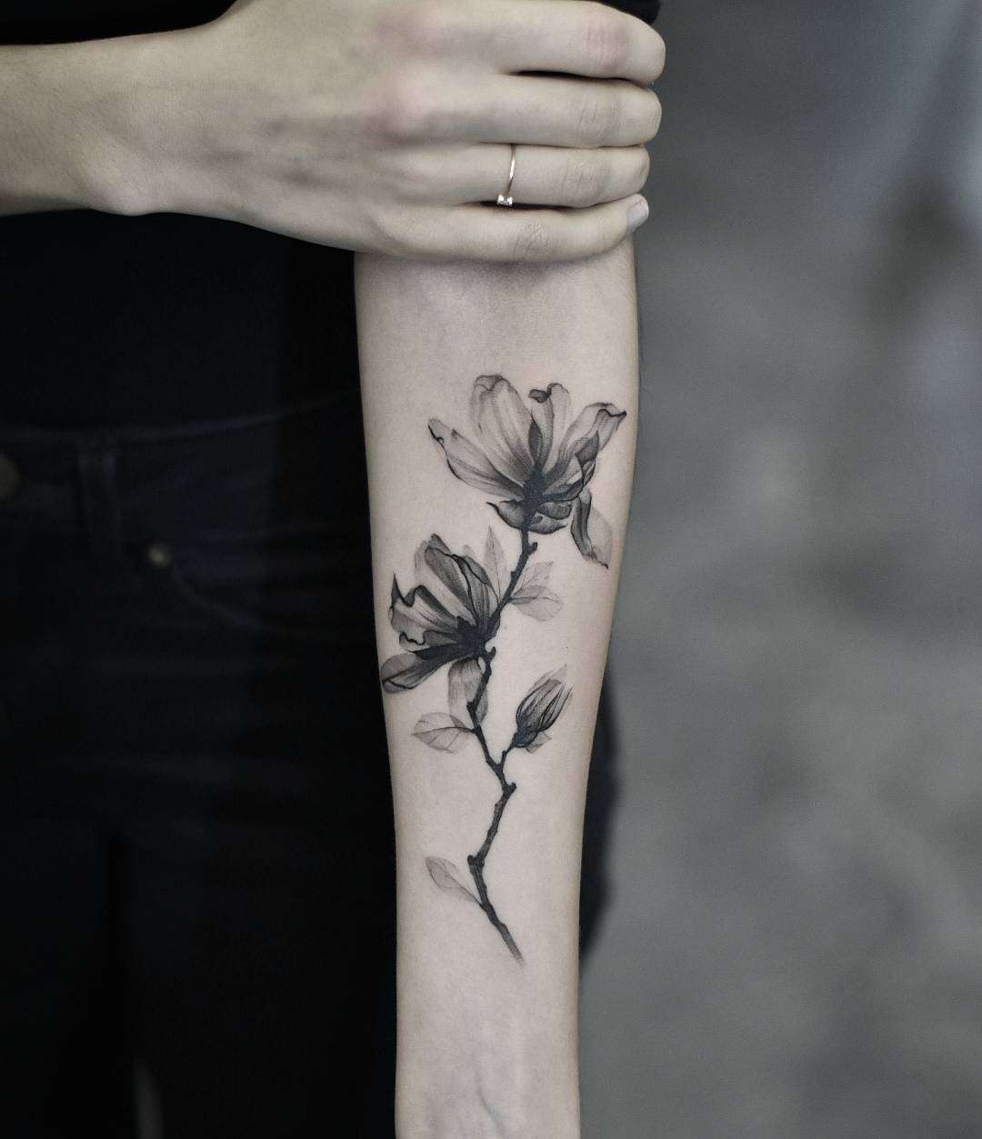 La grande majorité des amateurs de tatouages de fleurs de magnolia sont des femmes. Surtout exécuté dans un style aquarelle. La fleur accentue la beauté fragile et sensuelle de l'hôtesse. Elle évoque ses pensées pures, son désir de créer une famille et de servir son mari et ses enfants. La signification du tatouage magnolia pour les filles est le désir d'être aimé et protégé par un conjoint fort.