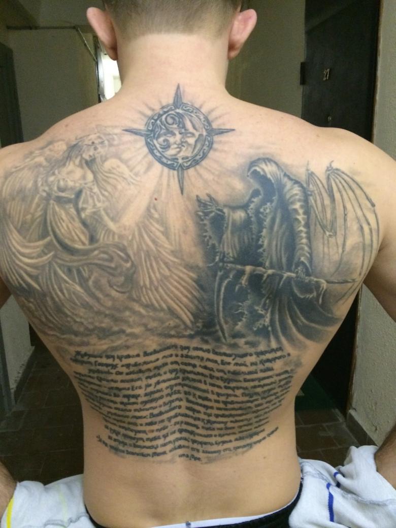 Le seuil de douleur des hommes permet des tatouages de grande taille, avec des éléments volumineux. Les hommes sont en principe plus robustes et plus tolérants. Pour le symbole de la vie du rembourrage, choisissez le dos. Il peut s'agir d'une composition entière ou d'une seule photo. Par exemple, le museau d'un animal de compagnie décédé, une maison natale qui n'existe plus, le portrait de proches décédés, etc.