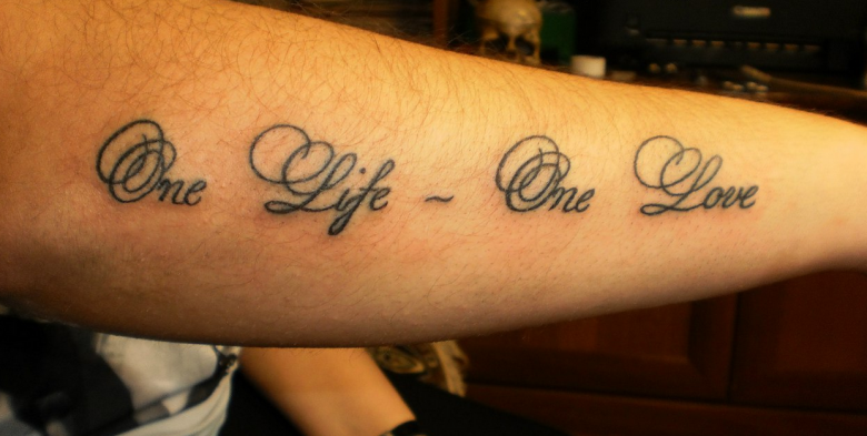 Le texte du tatouage peut être dans n'importe quelle langue. Par exemple, si l'on souhaite représenter un tatouage de vie en anglais, en français et dans d'autres langues, la traduction doit être soigneusement étudiée. Sinon, il y a un risque de recevoir un mauvais message.