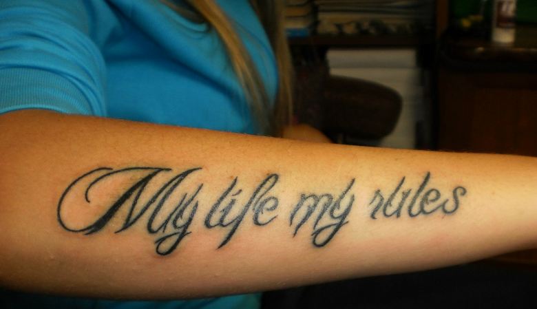 Pour les personnes courageuses, le tatouage est approprié ".Ma vie, mes règles". Ces personnes savent de quoi elles parlent. Contrôlez ce qui se passe dans le destin.