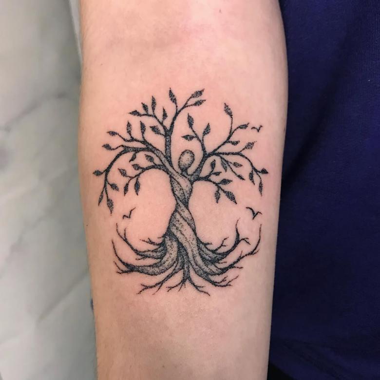 L'image peut être monochrome ou colorée. C'est l'arbre de vie qui convient aussi bien aux femmes qu'aux hommes. La signification de ce symbole est précisément l'arbre de vie. Les légendes et les mythes de toutes les cultures confèrent à cet arbre des propriétés particulières. Même en valeur équivalente à une créature vivante. Le tatouage arbre de vie porte la signification de l'infinité de la vie. Il symbolise la nature cyclique de la vie, la croissance, le développement et l'immortalité. Comme le tatouage de la vie et de la mort.