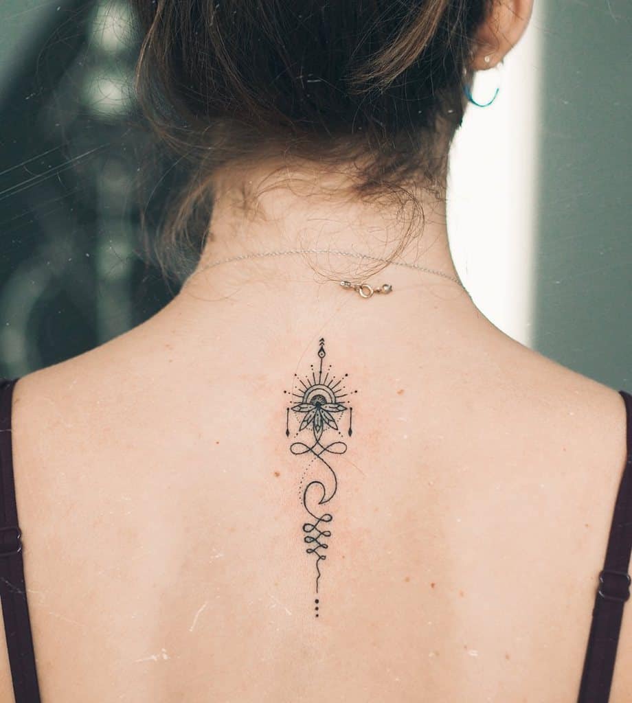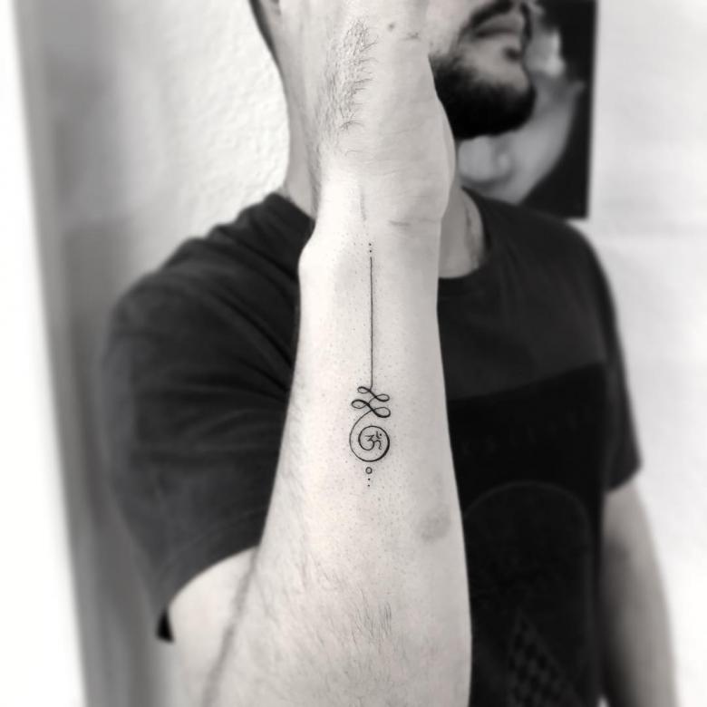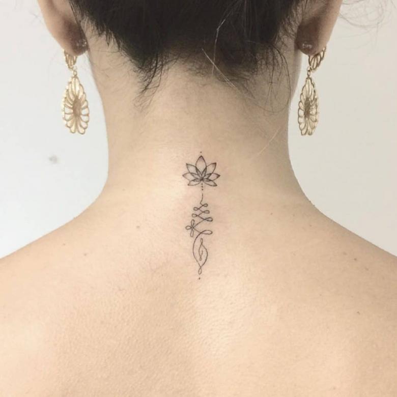 Quant à l'Unalome, l'enseigne a reçu le sens de booster les fonctions cérébrales. Pour cette raison, le tatouage Unalomé était placé plus près de la tête, sur le cou. Pour que l'amulette ne soit pas visible, choisissez l'arrière du cou. De plus, le symbole est superbe sur la poitrine, les bras, la clavicule, l'épaule. Des dessins miniatures peuvent être placés sur le poignet.